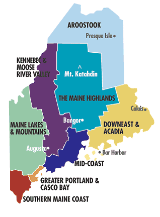| Welcome to Maine. From the shores of York county to the tip of Mount Katahdin, to the potato fields of Aroostook county, the state has abundant natural treasures for you to explore. Its beautiful lakes, rivers, forests and mountains provide boundless recreational opportunities.